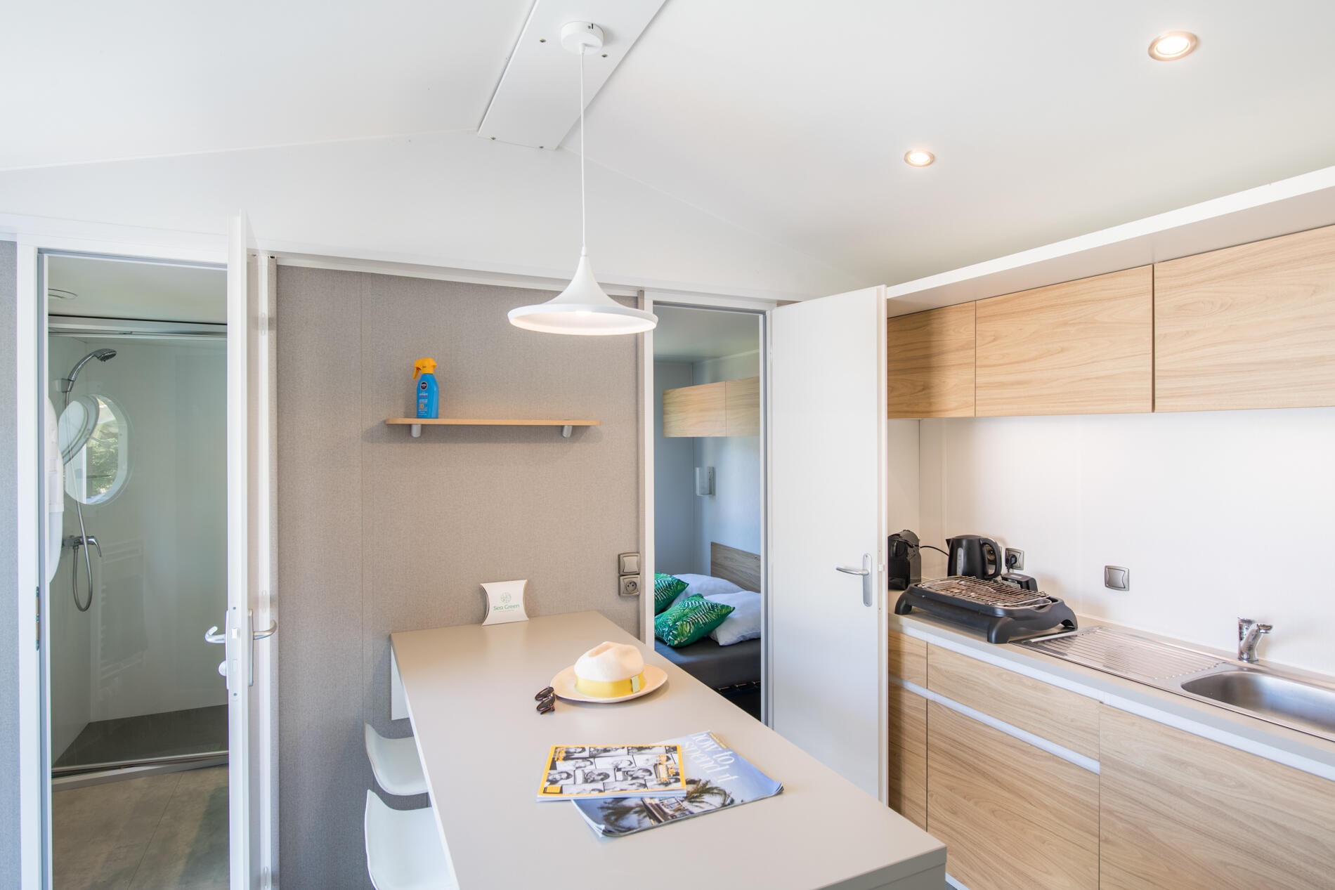 - Double bed (140x190) (duvet and pillows provided)