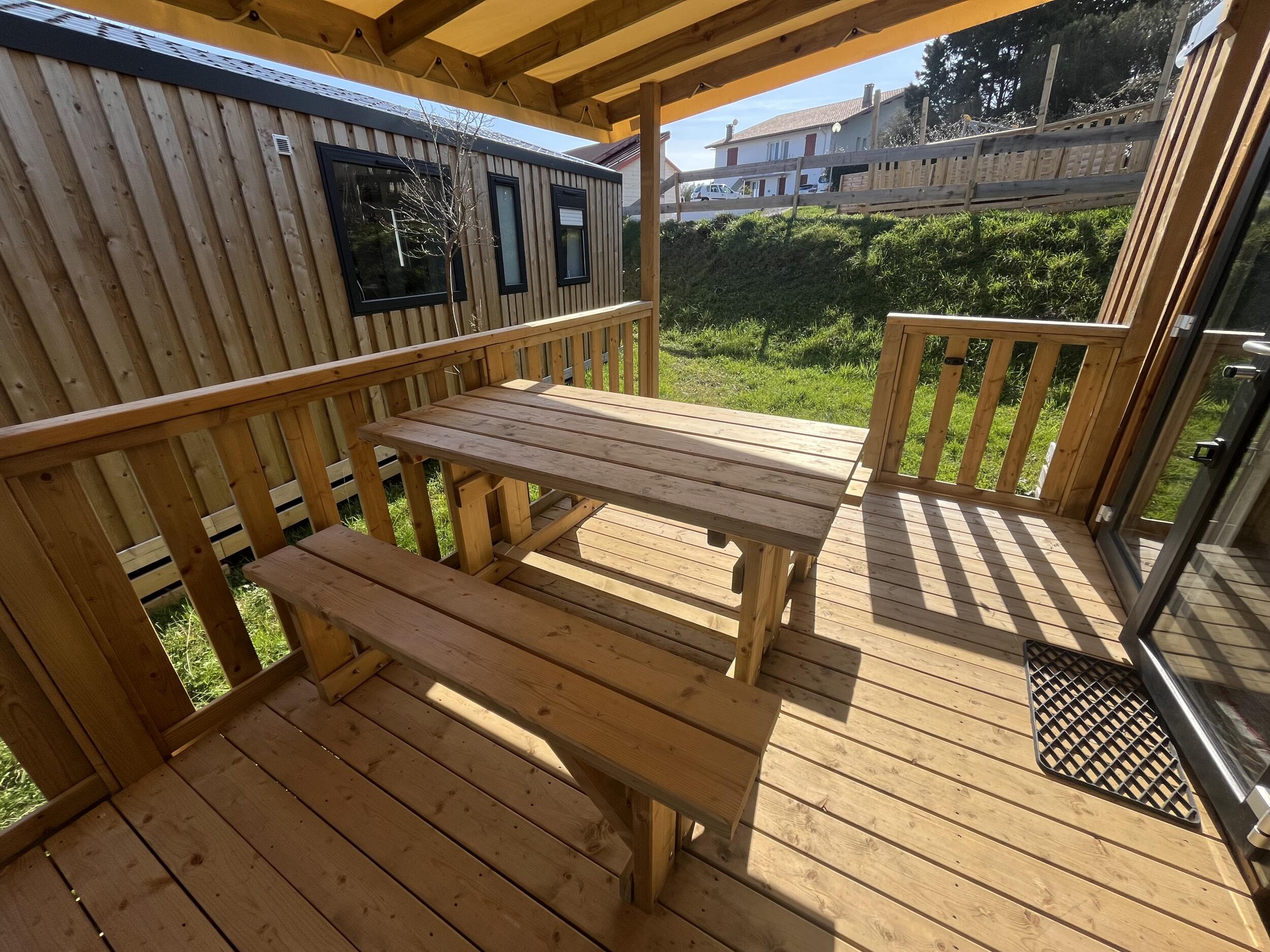 - Terraza de madera semicubierta